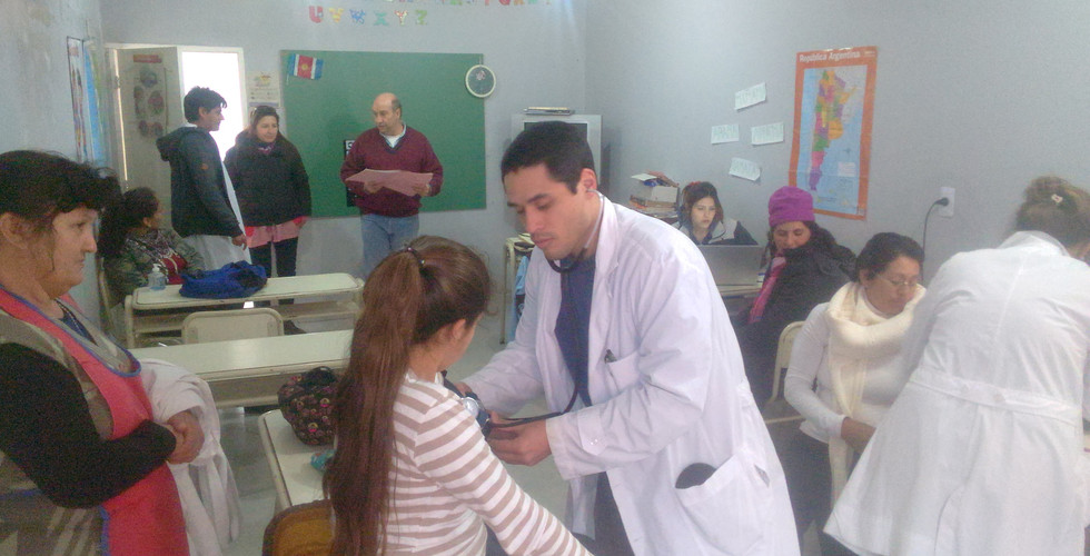 En orden y por familia ingresaban para atender a los chicos, y a los adultos de forma individual. Supervisados por el doctor Cristian, se armaron dos grupos de médicos rotantes que atendieron un rato en cada aula, para ver patología pediátrica y de adulto.