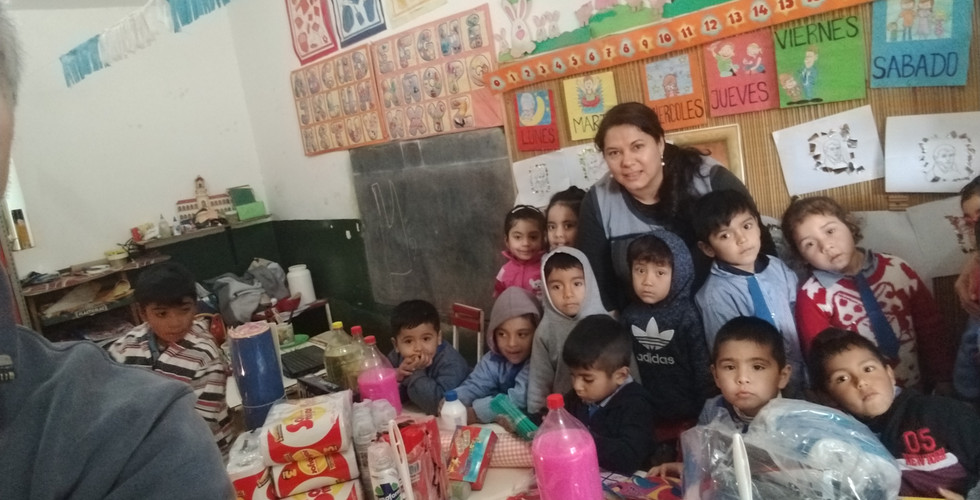 Un día tempranito salimos de Suncho Corral Raulito y Edu para la ciudad de La Banda, al barrio Sarmiento, donde se halla el Jardincito Mis Huahuitas, para llevarle las cosas y compartir con ellos la mañana. Nos recibieron 16 de los 30 alumnitos, ya que los otros están sufriendo los primeros fríos y están enfermitos, y no pudieron ir al Jardín. Además, estaban Silvia, encargada de maestranza, y Yannette, la maestra y directora del Jardín.