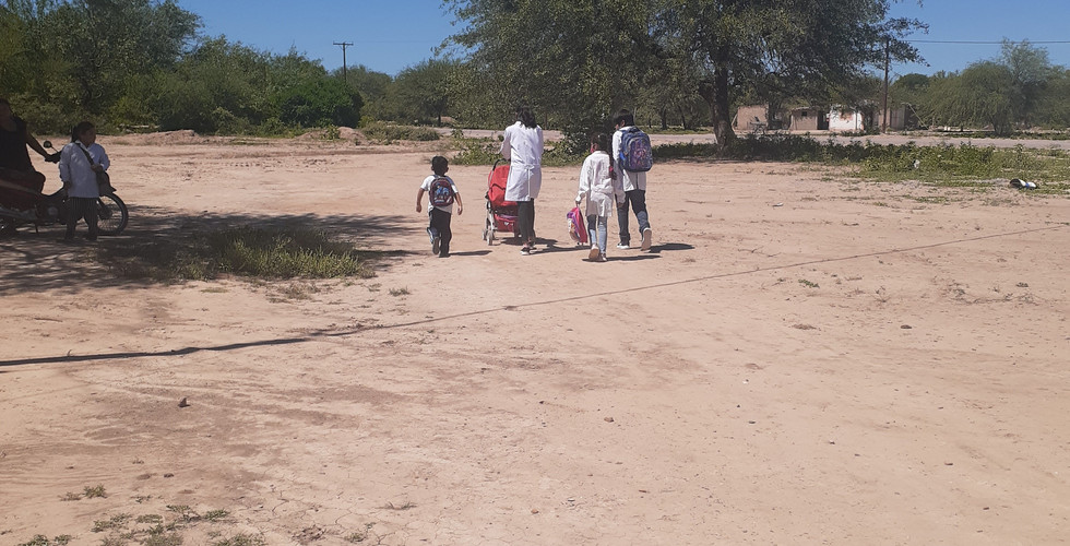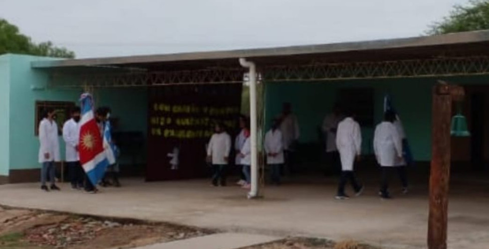 Acompañamos a los alumnos en su momento de despedida y honores a las banderas Argentina y de Santiago del Estero, saludándonos luego llenos de amor y admiración por nuestras Chinitas y Changuitos, que caminan grandes distancias para recibir educación.
